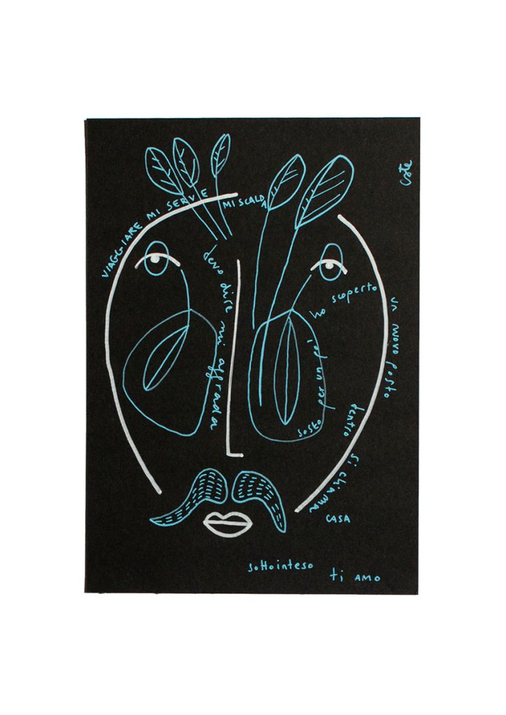 VIAGGIARE MI SERVE MI SCALDA devi dire mi aggrada sosto per un po' ho scoperto un nuovo posto dentro si chiama CASA sottointeso ti amo Cartoncino nero 200gr 14,8x21 cm Pennarelli a vernice 15€ Pronto per essere incorniciato!