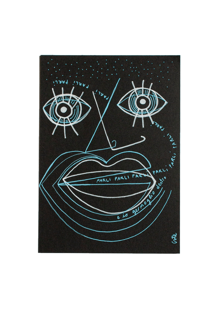 PARLI PARLI PARLI PARLI PARLI PARLI PARLI PARLI PARLI PARLI e io germoglio dentro Cartoncino nero 200gr 14,8x21 cm Pennarelli a vernice 15€ Pronto per essere incorniciato!