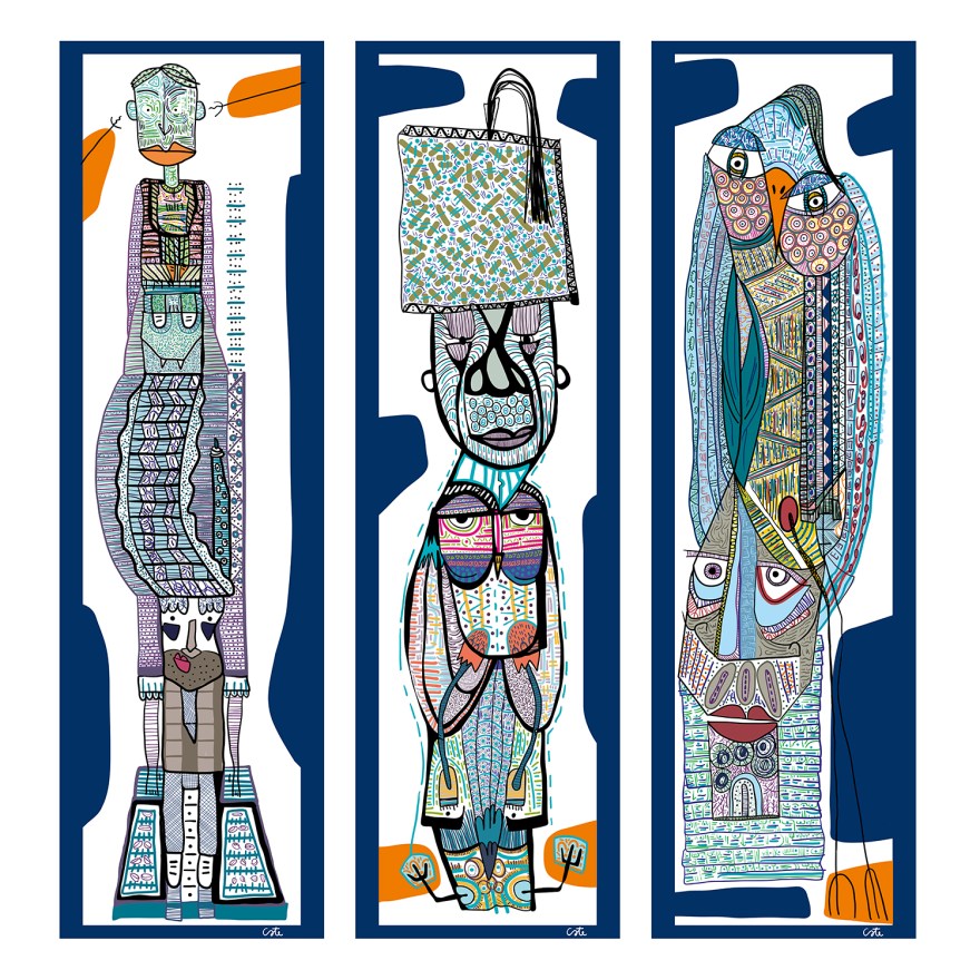 description This series, inspired by the totem statues from South America, brings within it 3 different and consequent actions: whisper, float and soar. // Questa serie, ispirata dai totem del Sud America, porta al suo interno 3 azioni diverse e conseguenti: sussurrare, fluttuare e librarsi.