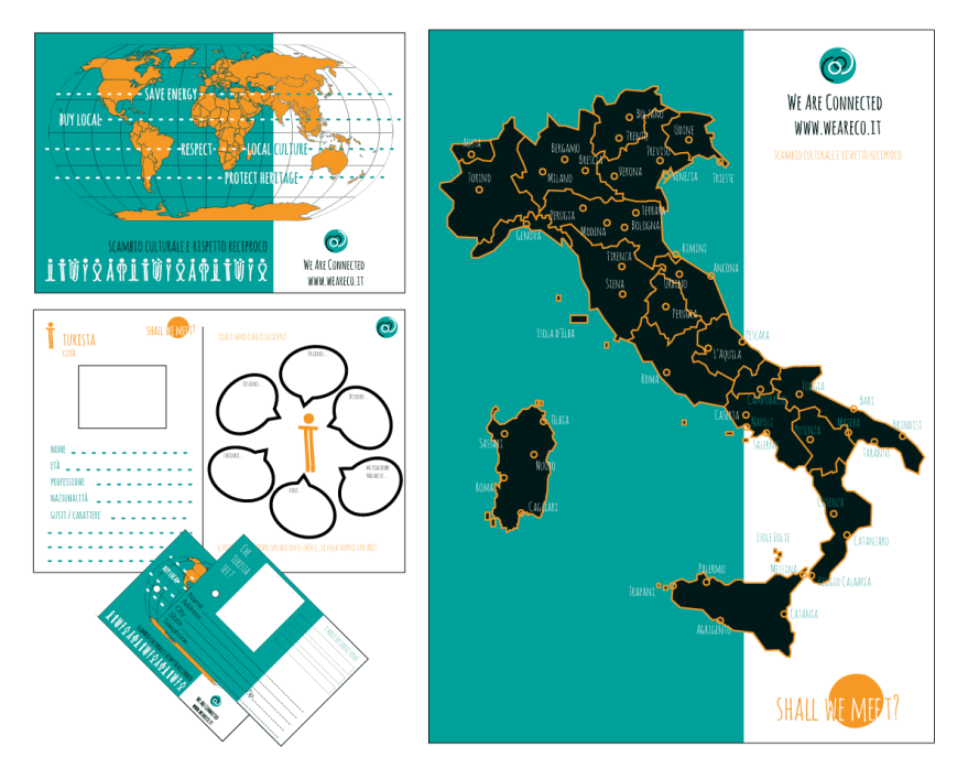 description We Are COnnected is a project that originated from my master’s thesis on sustainable tourism. With some collaborators, we have held various events in Venice and Milan to experiment with the project and to educate the new generations on sustainable tourism. I also took care of all the graphics and communication. // We Are COnnected è un progetto che ha avuto origine dalla mia tesi di laurea specialistica sul turismo sostenibile. Con alcune collaboratrici abbiamo fatto diversi eventi a Venezia e a Milano di sperimentazione del progetto e di educazione al turismo sostenibile per le nuove generazioni. Io mi sono occupata anche di tutta la parte grafica e comunicativa.